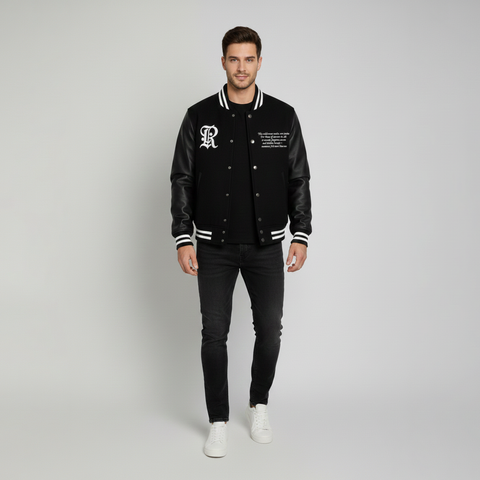 Signature Rubail Detailing: Includes the bold 'R' Logo embroidery and an optional subtle quote on the chest for unique sophistication.